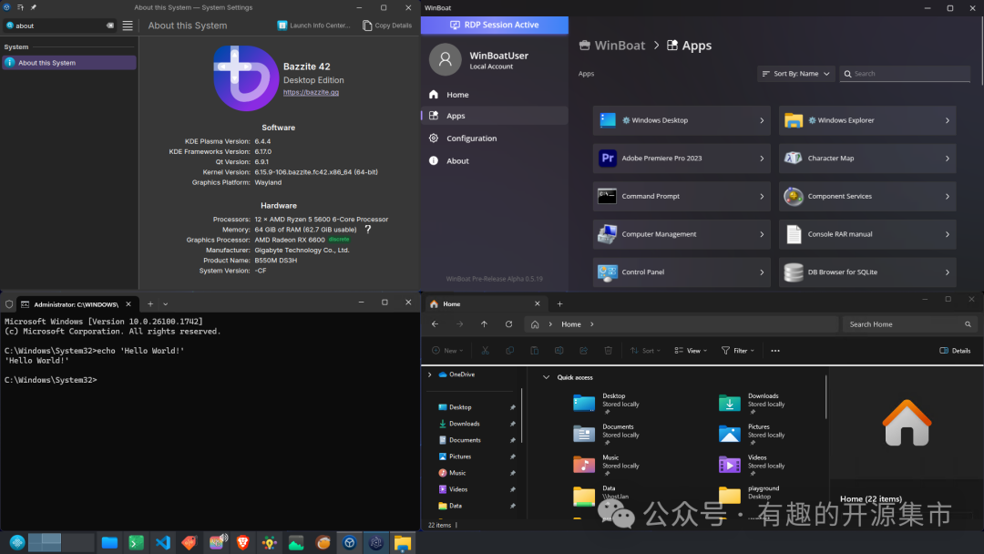 Linux 和 Windows 是两个最主流的操作系统。然而,许多用户和开发者常常需要在 Linux 环境下运行 Windows 应用程序,这通常需要复杂的配置和虚拟机管理,不仅耗时耗力,还可能导致性能下降和资源浪费。现有的解决方案如 Wine 和虚拟机虽然在一定程度上解决了这个问题,但它们往往存在兼容性差、性能低下、配置复杂等问题。WinBoat 应运而生,旨在为 Linux 用户提供一个无缝运行 Windows 应用程序的终极解决方案。一款专为 Linux 用户设计的工具,它允许你在 Linux 环境下无缝运行 Windows 应用程序。通过 WinBoat,你可以直接在 Linux 桌面上运行 Windows 应用,而无需复杂的配置或虚拟机管理。WinBoat 提供了优雅的界面、自动化的安装过程、文件系统集成以及完整的 Windows 桌面体验,使 Windows 应用程序在 Linux 上运行得如同原生应用一样流畅。