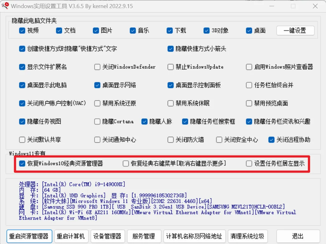使用这款软件,只需要勾选“恢复经典右键菜单(取消‘显示更多选项’)”
