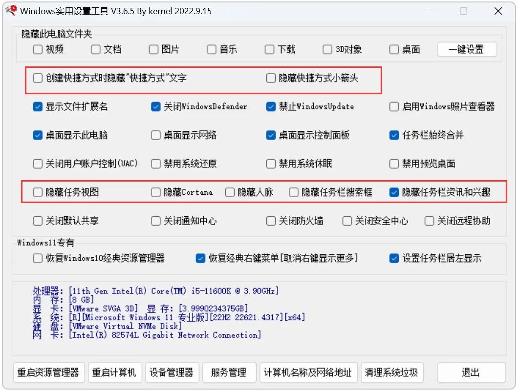 对于重度强迫症用户来说,这款软件简直贴心到极致,比如可以去除桌面快捷方式的文字和箭头,隐藏任务栏资讯动态等。