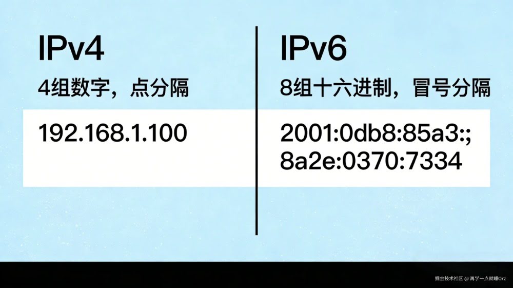 │ ├── IPv6: 2001:db8::1(了解即可)