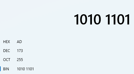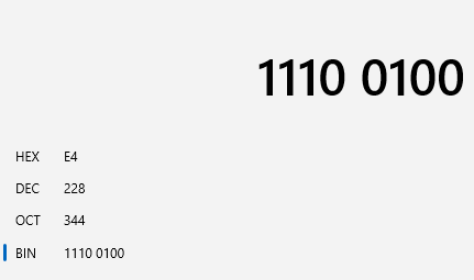 "A"的码点为U+0041,在U+0000~U+007F访问内,占用1字节。 - 十六进制转换成二进制