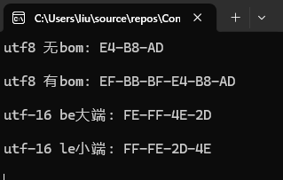 Console.WriteLine("utf-16 be大端: "+utf16_le + "\n");