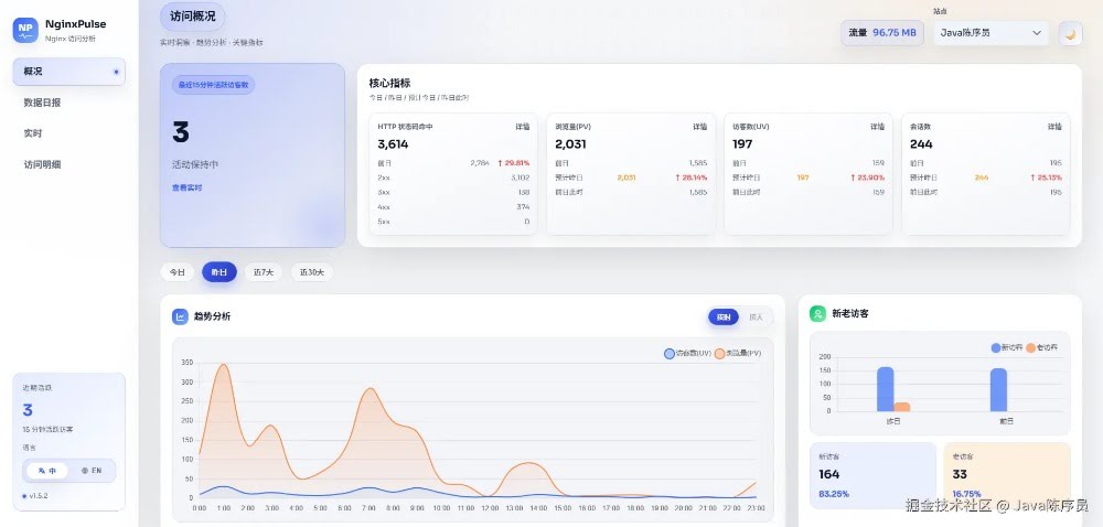 今天,给大家推荐一款开源的轻量级 Nginx 日志分析可视化面板,告别逐行翻日志! 项目介绍