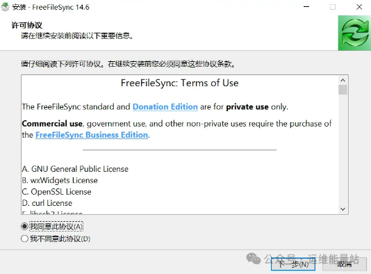 一、下载与安装1、下载软件:https://freefilesync.org/download.php 2、安装步骤我这里以(windows为例 )选择“同意”并“下一步”。