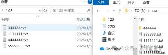 设置好以后,如果123目录中文件有变化,他会调用FreeFileSync工具进行复制,以下图为变化前
