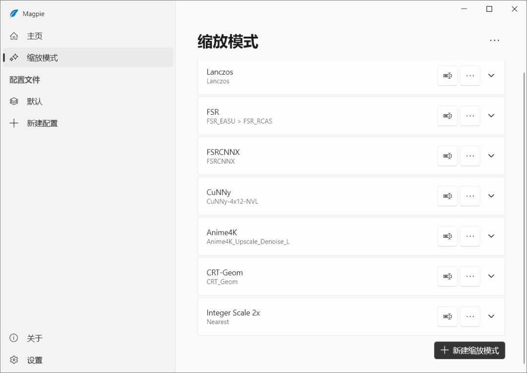 Magpie:一款轻量型窗口缩放工具,支持Win10和Win11使用,完全免费,便捷免安装,内置 Lanczos、FSR、CuNNy和Anime4K等7种算法。 ![]() ![]() 支持快捷键操作,窗口模式缩放快捷键Alt+Shift+Q,全屏模式缩放快捷键Alt+Shift+A。 ![]() ![]() 支持固定工具栏、截图和拖动对顶角缩放,支持调整帧率,最高支持60帧。 ![]()