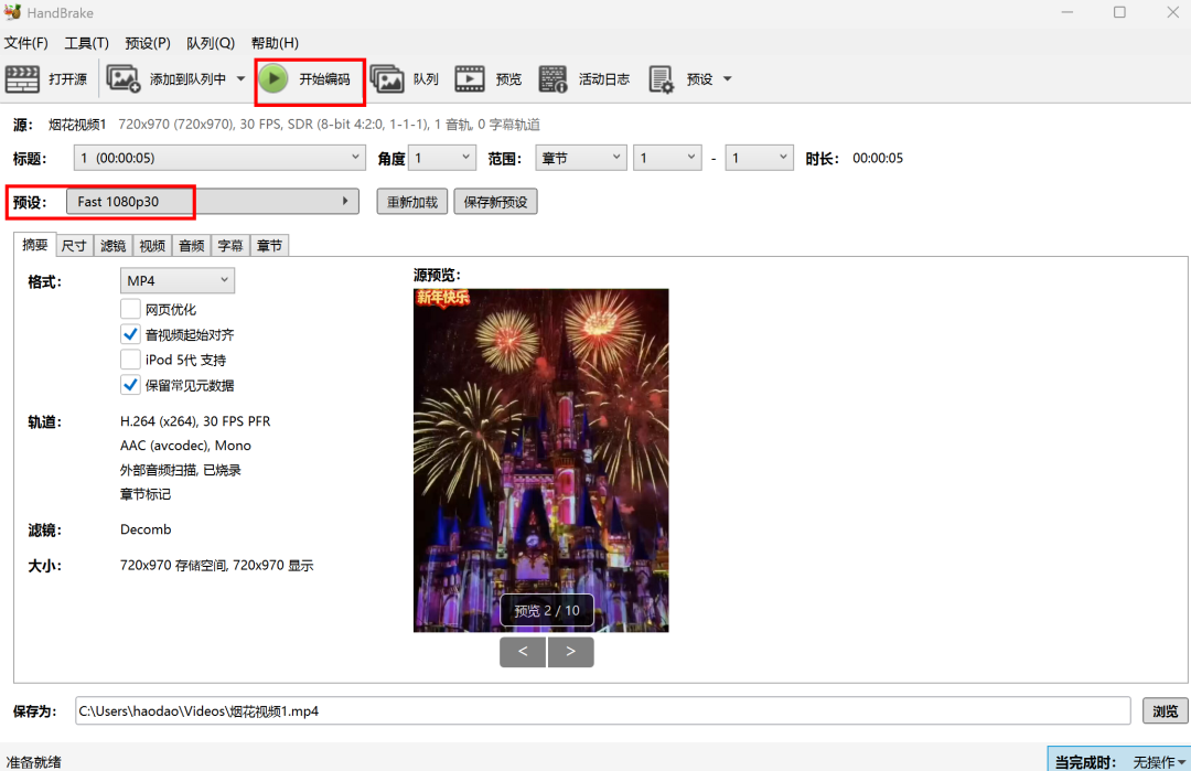[点晴永久免费OA]HandBrake:一款开源、跨平台的视频转码工具,在几乎不损失画质的前提下,把体积压缩减到原来的三分之一甚至更小