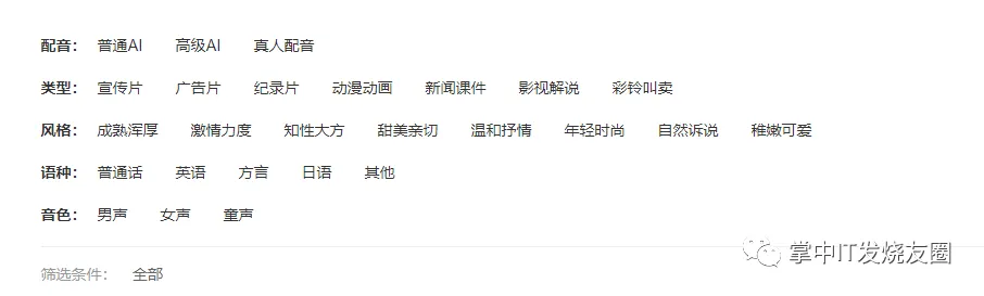 除了影视解说类的声音,网站内还有宣传片音、广告片音、纪录片音、动漫动画音、新闻课件音、彩铃叫卖音.....听起来都很自然。