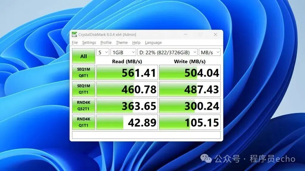 我还顺手跑了几轮 Geekbench 和 CrystalDiskMark。Geekbench 的成绩两边差不多,属于正常范围;但在磁盘测试里,Tiny10 的写入速度几乎能快出一倍,这对老硬盘或者入门级 SSD 来说,提升非常直观。