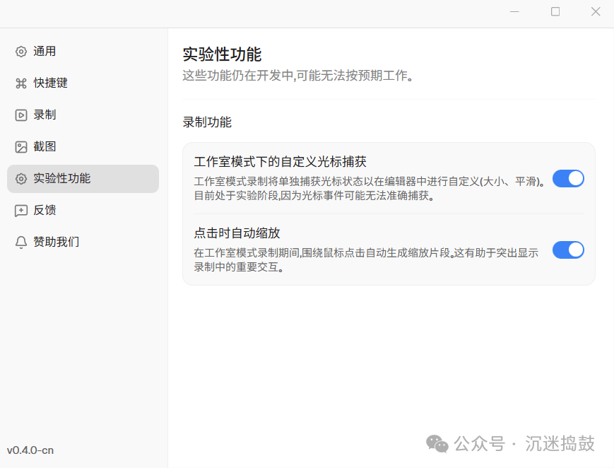 软件支持丰富的自定义设置与灵活的分享方式,兼顾个性化体验与协作效率:全维度自定义:可调整软件主题、外观与语言,适配不同使用习惯;支持快捷键自定义,录制启停、模式切换、暂停等操作均可设置专属快捷键,提升操作速度;还可调节录制倒计时、最大帧率、分辨率等参数,精准匹配设备性能与录制需求。灵活导出与分享:支持MP4、GIF等多种格式导出,可自定义保存路径与文件名称;内置一键分享功能,生成分享链接后无需下载即可发送给他人,同时支持密码保护敏感内容,兼顾便捷性与隐私安全。实验性功能拓展:提供自定义光标、捕获点击缩放等实验性功能,用户可根据需求开启尝试