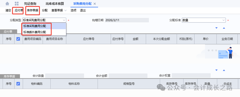 成本管理-存货核算-采购费用分配。