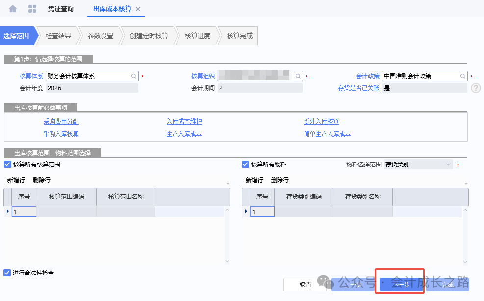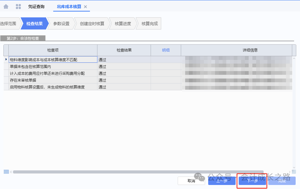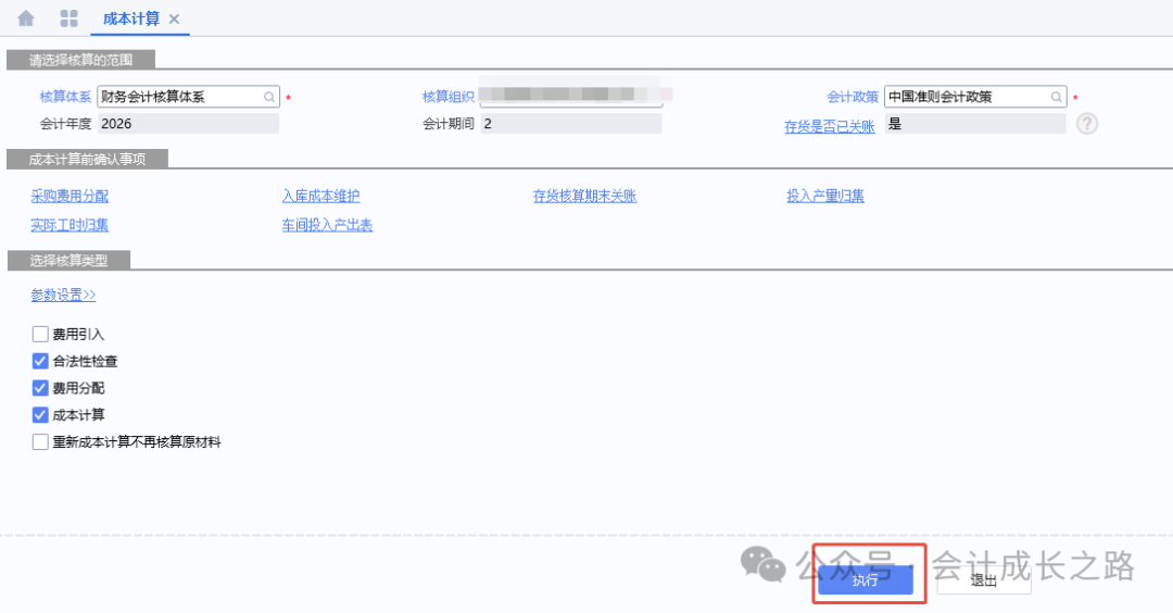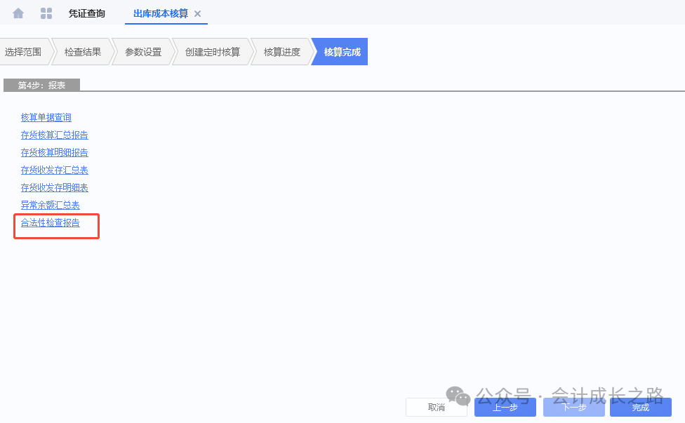 17、成本计算-执行,完成后查看合法性检查报告,处理相关问题。