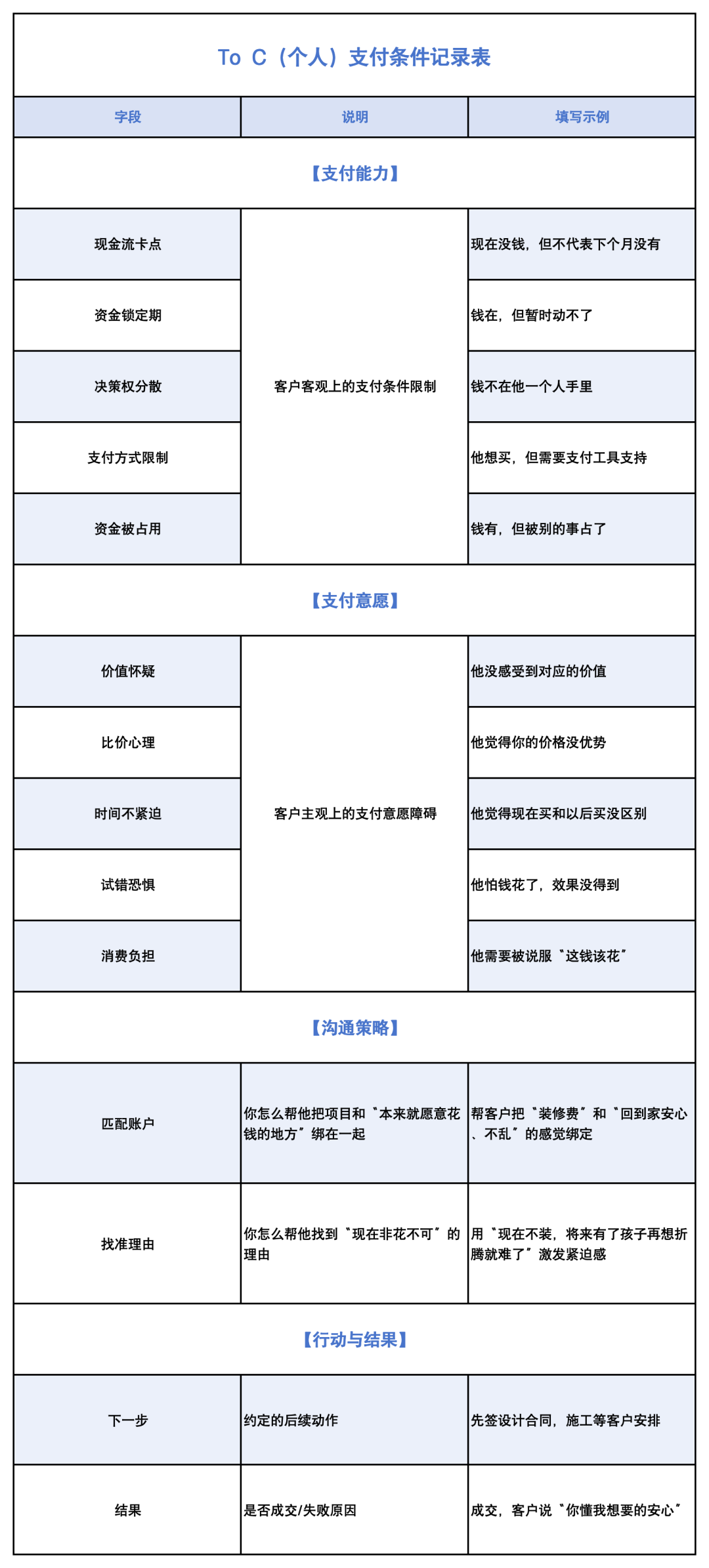 支付能力,是客户客观上有没有这笔钱、钱能不能动、什么时候能动。