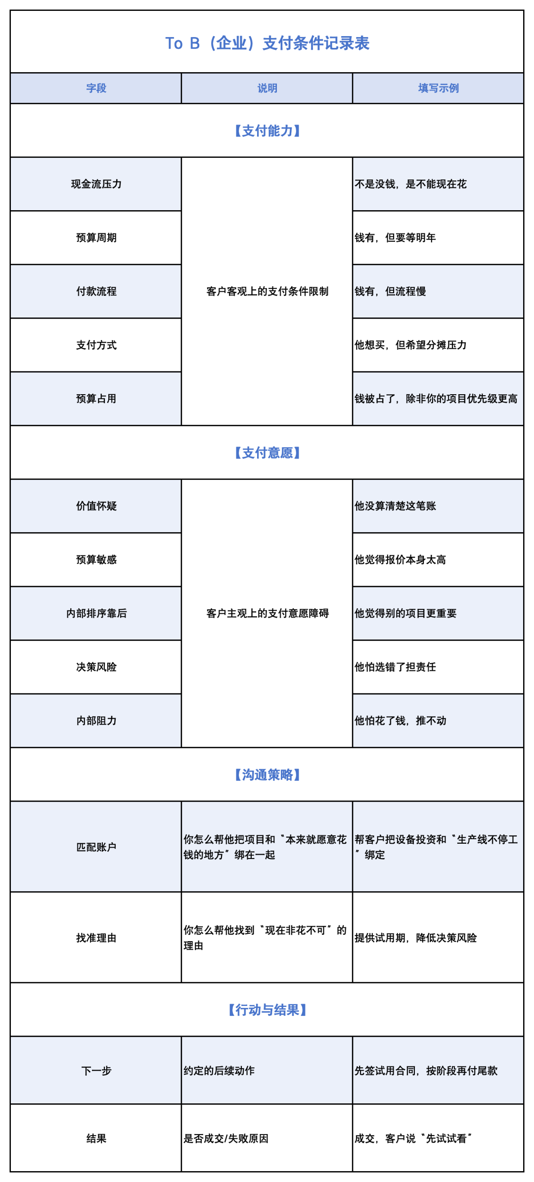 支付意愿——他主观上觉得值不值得现在花这笔钱?这笔钱花在你身上,能不能换来他想要的东西?
