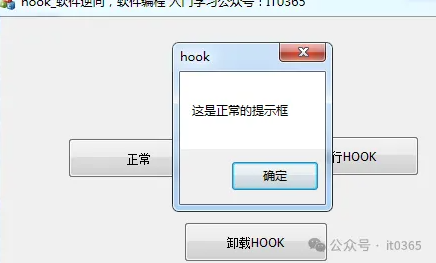 然而,借助 HOOK 技术,我们可以对这个消息提示函数进行干预。通过编写相应的 HOOK 代码,我们可以在消息提示函数被调用之前或之后插入额外的逻辑。例如,我们可以修改提示框中显示的内容,将“这是正常的提示框”替换为其他更具个性化或特定含义的消息;或者在提示框弹出之前进行一些额外的检查,只有在满足特定条件时才让提示框正常弹出,否则给出不同的提示信息。这样一来,我们就能够改变软件原本的消息提示行为,实现更加灵活和定制化的交互体验。