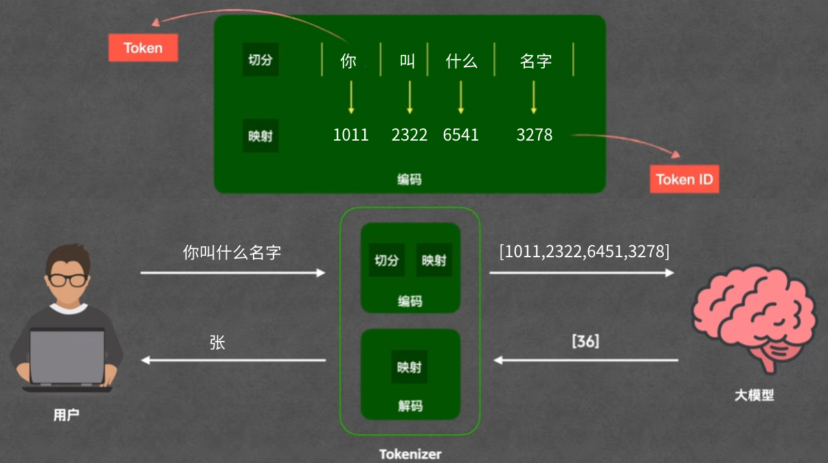 • 转换机制:在文字进入大模型前,会经过一个叫做 Tokenizer(分词器)的中间人。它的作用是将文字“切分”并“映射”为数字(Token ID);输出时再将数字解码回文字。