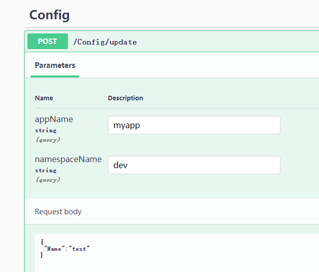 同时启动配置中心和客户端,打开配置中心的 Swagger 地址,修改并推送新的配置到客户端。