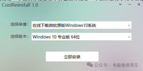 只要点一下,就能重装系统的工具你有吗?今天给大家分享的是winodws硬盘安装工具。这个软件非常简单,操作界面简单明了,可以在系统下操作。选择镜像:它可以选择我们电脑里面的镜像,也可以直接在线安装下载。选择版本:可以让你自由选择【专业版】,【家庭版】,【企业版】。选择我们需要的系统和版本之后,点击【立即安装】就可以了。...