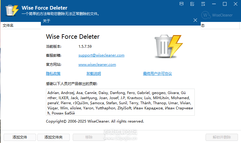 工具简介:解决Windows系统“无法删除文件:拒绝访问”的问题,彻底删除无法删除的文件。功能特点:一、删除Windows无法删除的文件在Windows中,当我们试图去删除一个文件时,可能会遇到如下提示:1).访问被拒绝!2).文件共享冲突!3).目标文件正在使用中!4).文件正被另一进程使用!5).请确认磁盘未满或未...