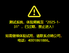 测试系统,已过体验期,禁止进入!如需继续体验试用,请联系点晴公司,电话:4001861886。如何解决?提示很清楚,就是体验已到期。联系点晴公司,可以延长体验时间。参考位置:company_inf