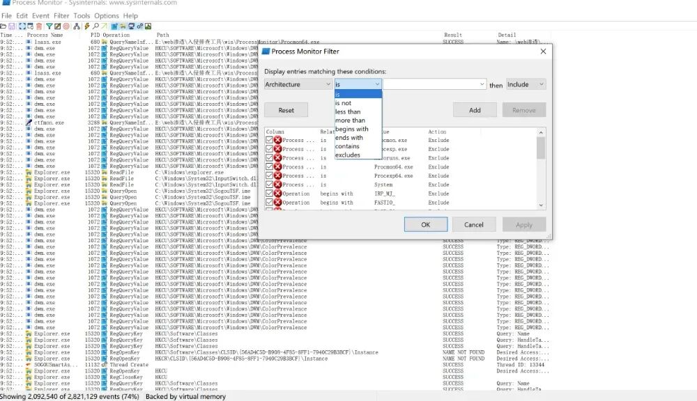 一、Procmon简介Procmon(ProcessMonitor)是微软Sysinternals套件中最核心的系统行为监控工具,能够实时捕获并记录Windows系统中的文件读写、注册表操作、进程创建、线程活动、DLL加载等底层事件。它将ProcessExplorer、FileMon、RegMon的能力融合在一起,通过...