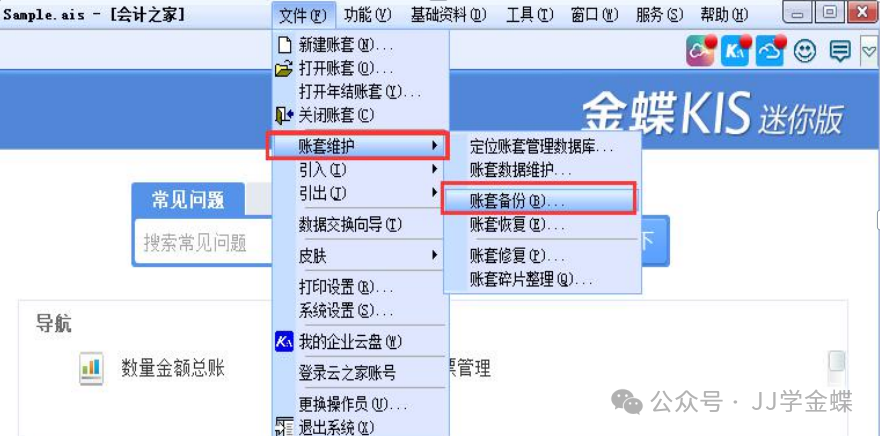 | 金蝶软件各版本备份操作流程:一、金蝶KIS迷你版/标准版备份账套:软件主界面右上角【文件】-【账套维护】-【账套备份】,选择备份账套保存位置,建议勾上【备份到企业云盘】,点击【备份】按钮,这样在本地路径和金蝶企业云盘中同时进行备份。二、金蝶KIS商贸版备份账套1、金蝶KIS商贸版6.1及先前版本的账套备份:开始-所有程...   |