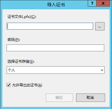 在弹出的 “导入证书” 窗口中,选择证书文件存放路径,输入密码,单击确定。如下图所示: