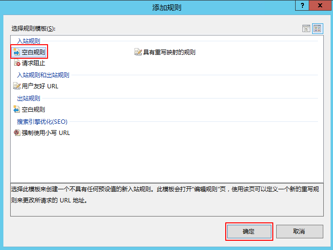 在弹出的 “添加规则”窗口中,选择空白规则,单击确定。如下图所示:
