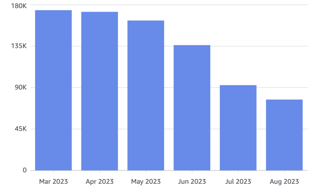 我们的云支出(不包括S3)已经减少了 60% 。从每月大约十八万美元($180,000)减少到不到八万美元($80,000)。每年可以在这里省下的钱折合一百万美元,而且我们在九月还会有第二轮大幅降低,剩余的支出将在年底前逐渐减少。 现在可以将省下的云开销与我们自己购买服务器的支出相比。我们需要花五十万美元来采购新服务器,用于替换云上所有的租赁项目。虽然会产生一些与新服务器有关的额外开销,但与整体图景相比(例如我们的运维团队规模保持不变)这只能算三瓜俩枣。我们只需要把新花掉的钱和省下来的钱进行简单对比,就能看出这个令人震惊的事实:我们会在不到六个月的时间内,省下来足够多的钱让这笔采购服务器的大开销回本。 但是请等我们把话说完,看一看最终省下来的结果:用不着小学算术就能看出,最终能节省下的开销金额高达每年两百万美元,按五年算也就是整整 一千万美元!!!。这真是一笔巨大的钱款,直接击穿了我们的底线。 我们要再次提醒,每个人的情况都可能有所不同,也许你没有像我们之前那样使用这些昂贵的云服务:Aurora / RDS,以及 OpenSearch。也许你的负载确实有着很大的波动,也许这,也许那,但我并不认为我们的情况是某种疯狂的特例。 事实上,从我看到的其他软件公司未经优化的云账单来看,我们节省下来的钱实际上可能不算大。你知道过去五年 Snapchat 在云上花费了三十亿美元吗?在以前的泡沫时代没人在乎业务是否盈利,能省个十几亿这种事“不重要”,也没人愿意听,但现在确实很重要了。 06-23 我们已经下云了!