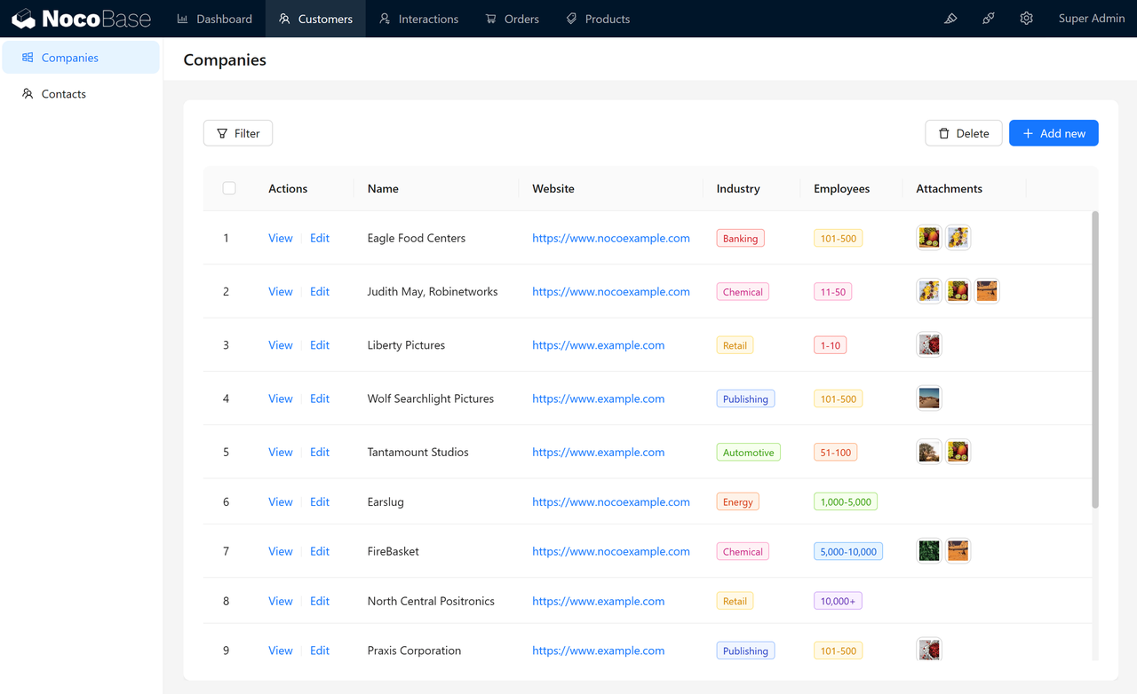 NocoDB 适用于需要数据密集型操作的企业,如 CRM、项目管理、运营管理和库存管理。