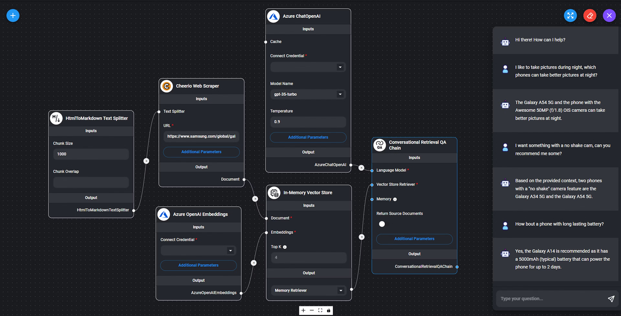 • 拖放界面:简化了 LLM 应用的创建过程,支持使用内置模板和逻辑。