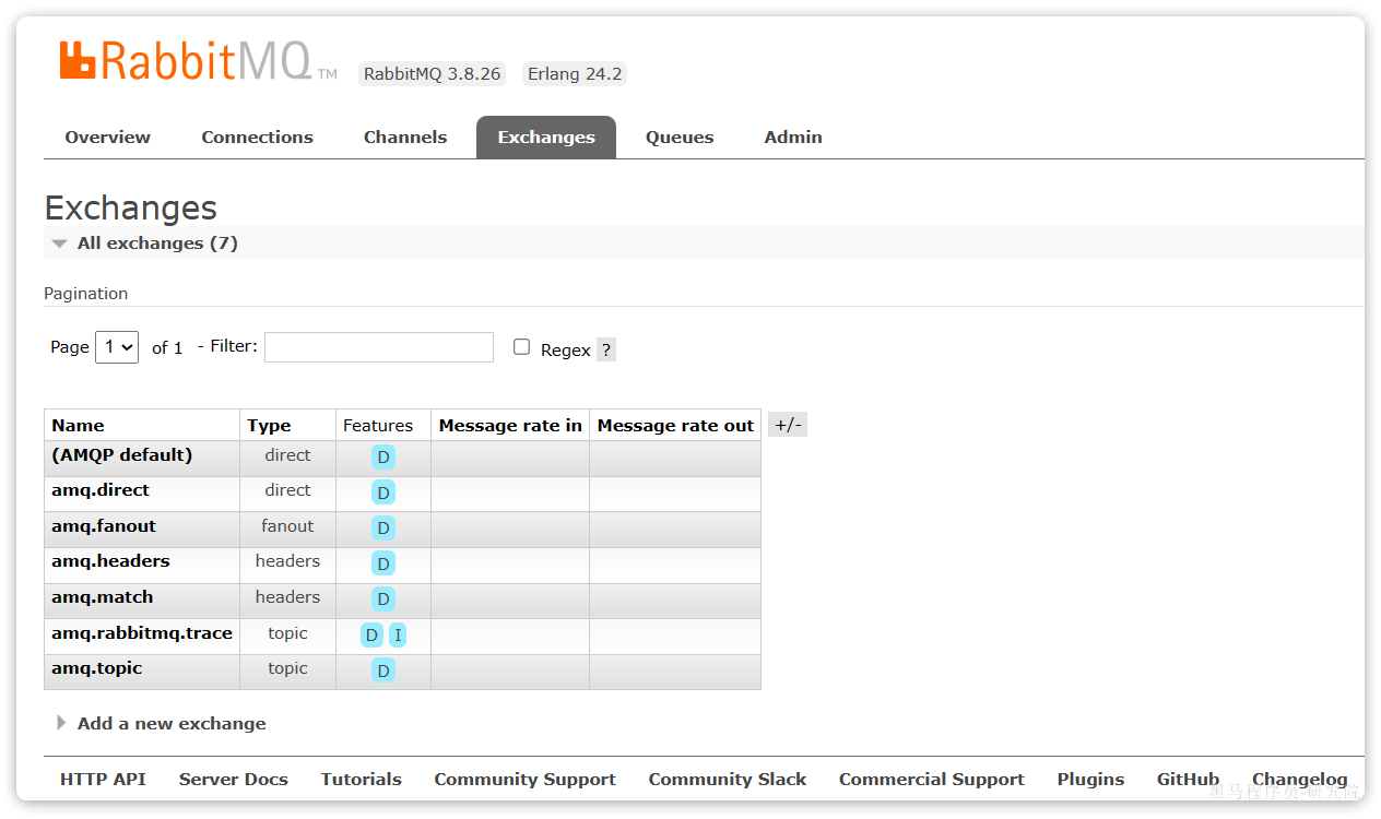 打开Exchanges选项卡,可以看到已经存在很多交换机: