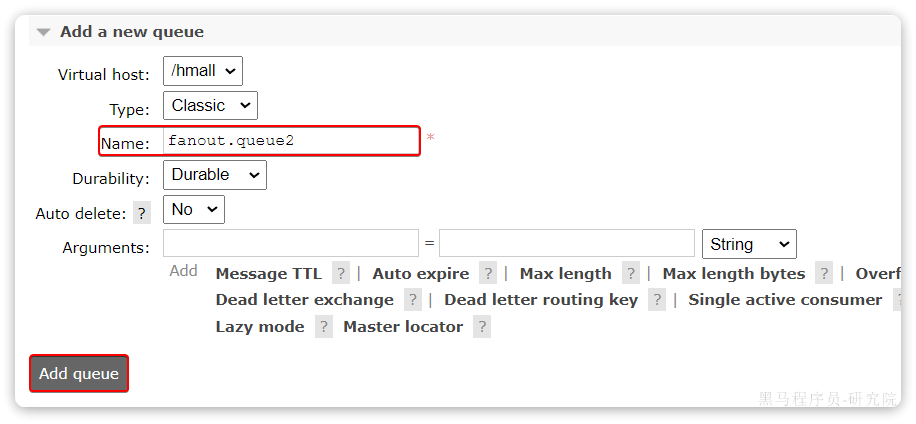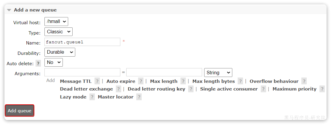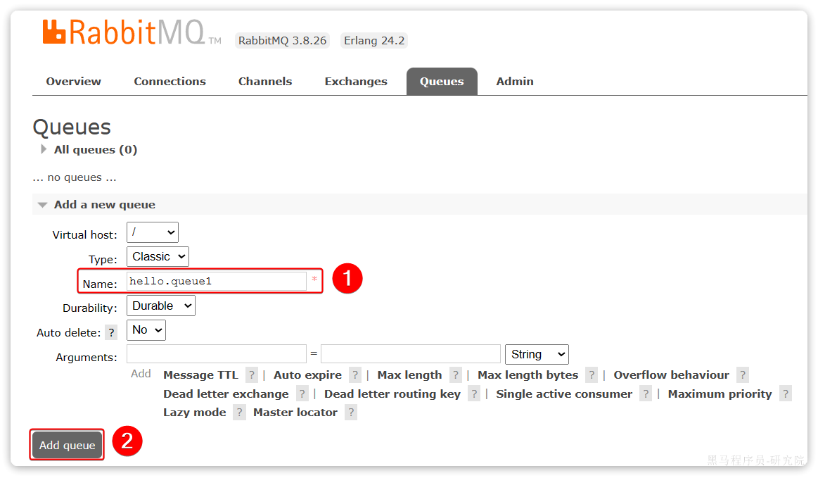 打开Queues选项卡,新建一个队列: