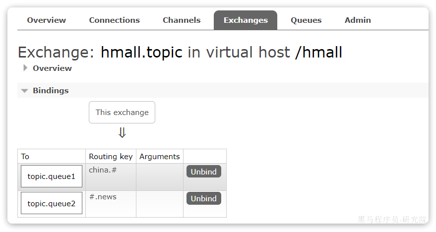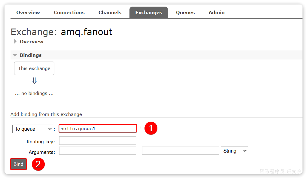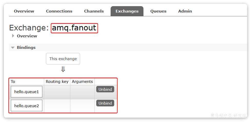 相同的方式,将hello.queue2也绑定到改交换机。
