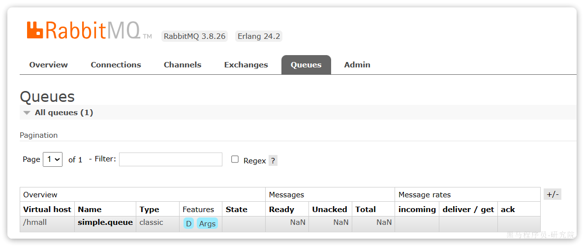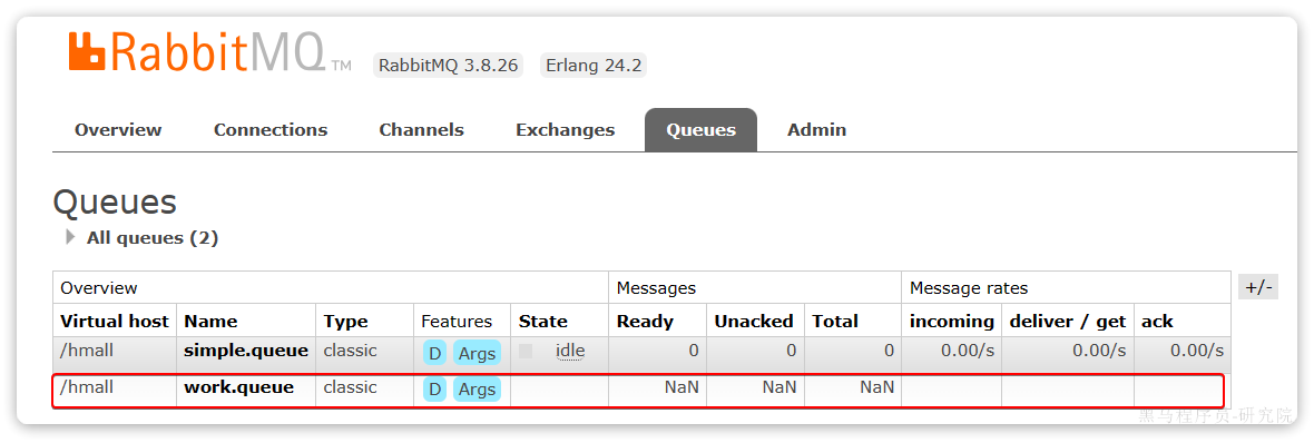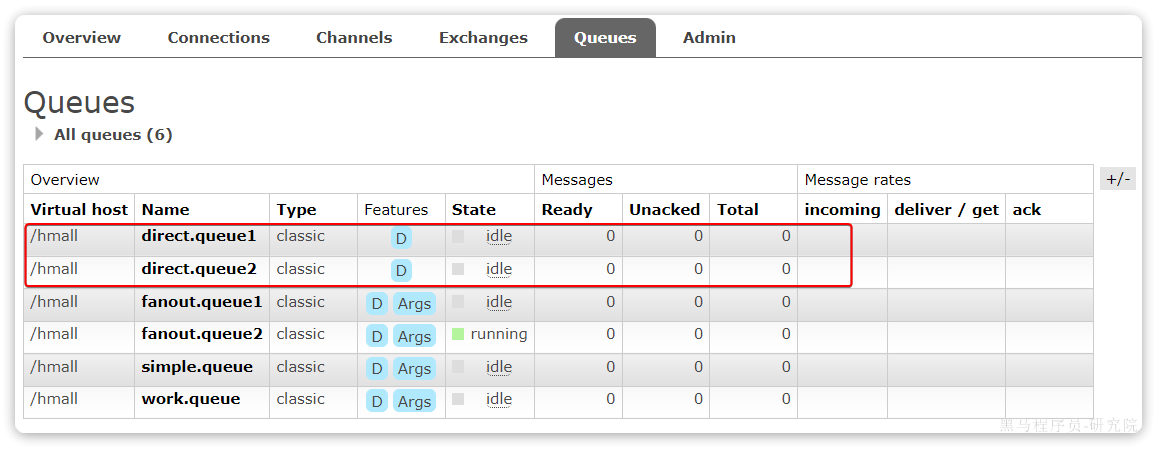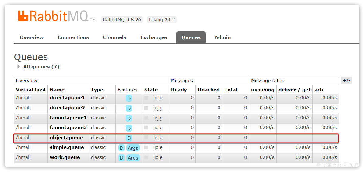 然后再次查看queues选项卡,会发现之前的队列已经看不到了:
