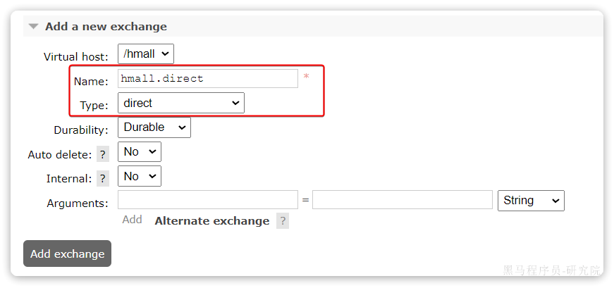 return ExchangeBuilder.directExchange("hmall.direct").build();