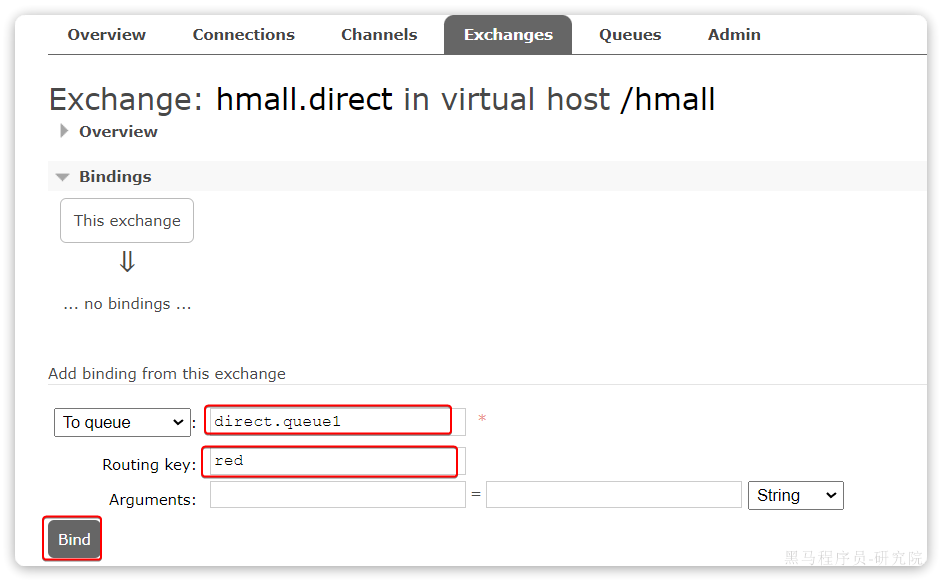 public Binding bindingQueue1WithRed(Queue directQueue1, DirectExchange directExchange){