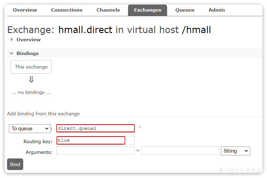 public Binding bindingQueue1WithBlue(Queue directQueue1, DirectExchange directExchange){