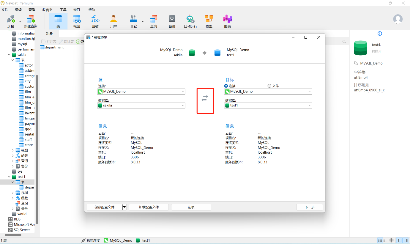 现在,让我们开始演示Navicat这一便捷且高效的数据传输功能。