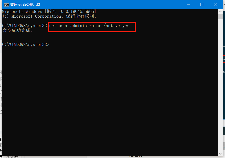 当你完成特定的系统任务后,想关闭Administrator管理员账户,那么重复以上2个步骤,在命令窗口输入:net user administrator /active:no再按Enter键运行,那么就成功关闭管理员账户。