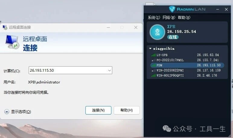 在 Radmin Viewer 中选择你刚刚创建的连接。