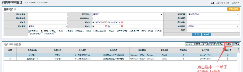 | 点晴模切ERP-编辑和作废询价单-操作流程