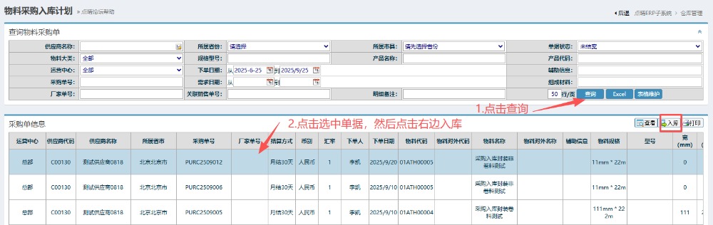 点晴模切ERP-采购入库计划操作流程