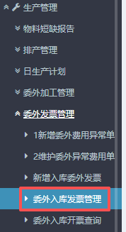 5.提交之后,可以到左侧功能菜单里找到“委外入库发票管理”