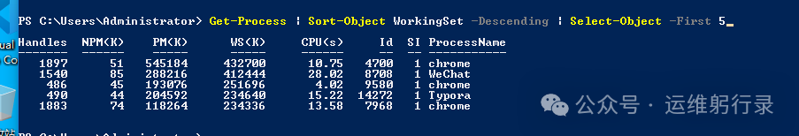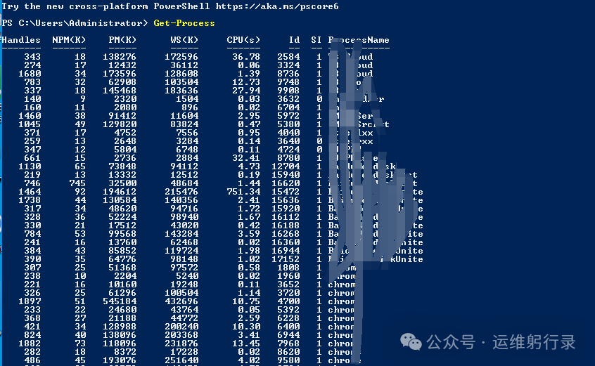 Get-Process(别名:ps, gps)获取进程信息,这个我用得特别多: