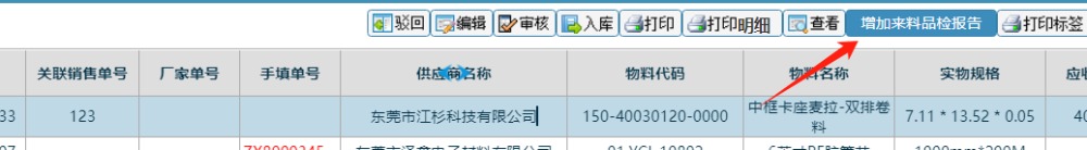 | 点晴模切ERP-新增来料品检报告-操作步骤
