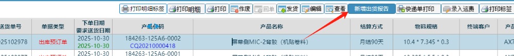 点中一条出货的物料信息后,再点击新增出货报告 如下图: