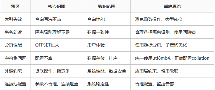 经过以上6大雷区的分析,相信你对MySQL的常见坑点有了更深入的理解。
